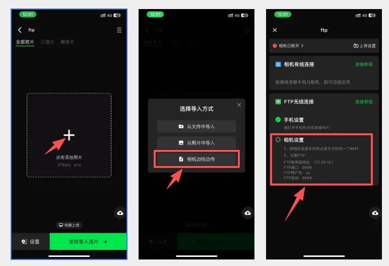 ⚠️ 温馨提示:一台手机可同时接收多台相机的FTP传图。